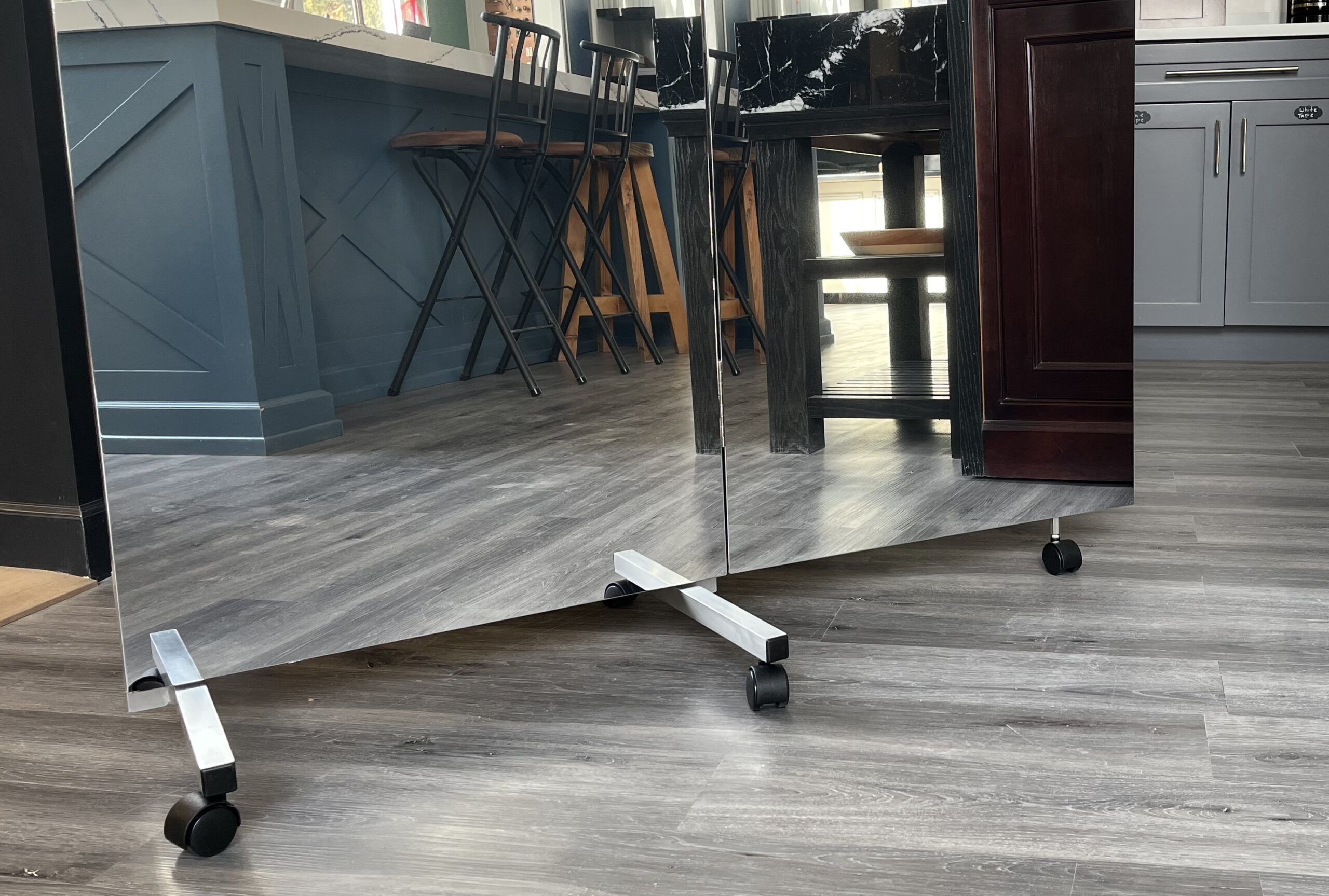The Mirrorlite® Folding Glassless Mirror is designed for maximum portability, safety, and ease of use in professional and temporary environments. Its lightweight, shatterproof construction allows the mirror to be transported and deployed without the risks and handling challenges associated with traditional glass mirrors.
