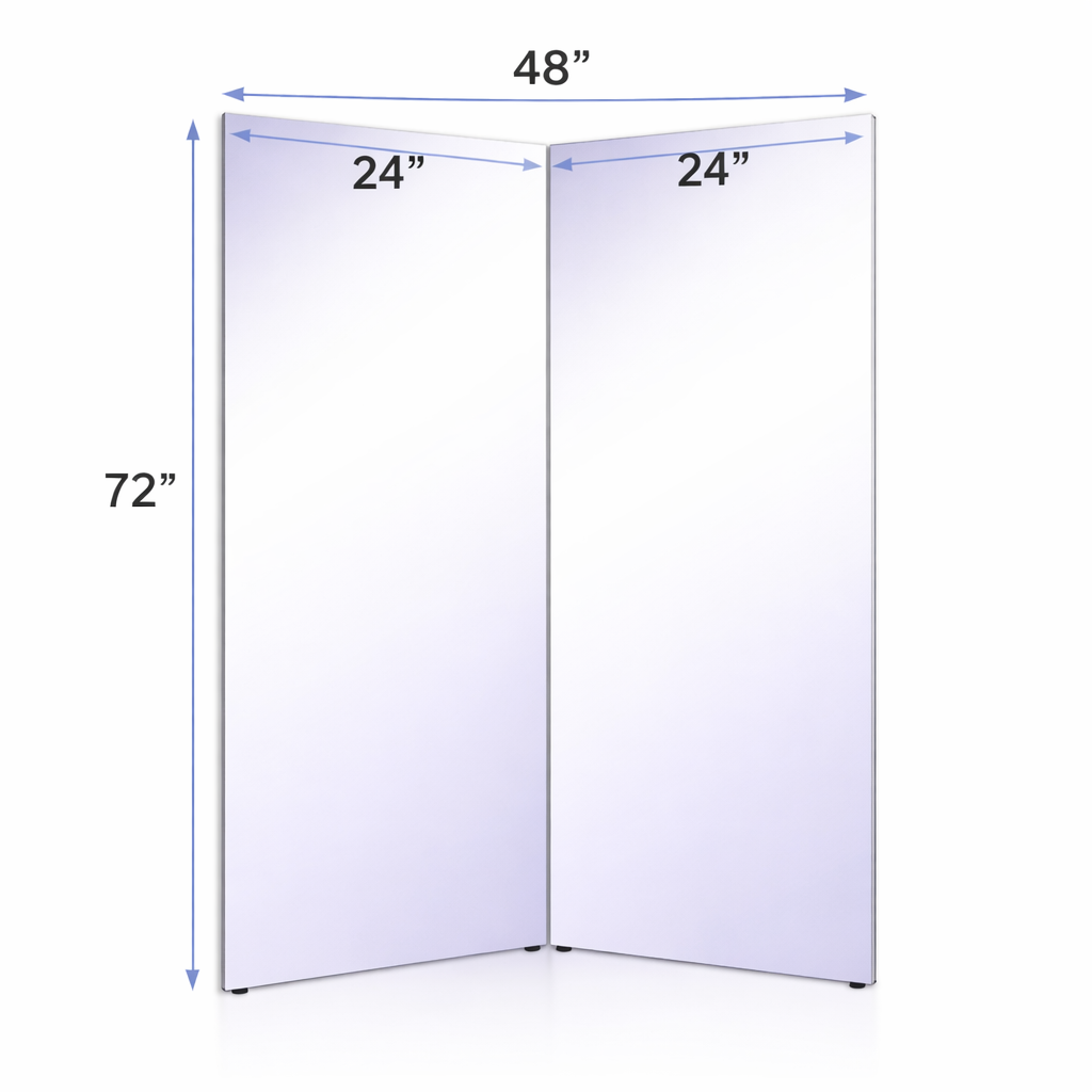 Mirrorlite® Folding Glassless Mirror(2 Panels) 48″ x 72″ x 1″(Opened) 24″ x 72″ x 2″(Folded)
