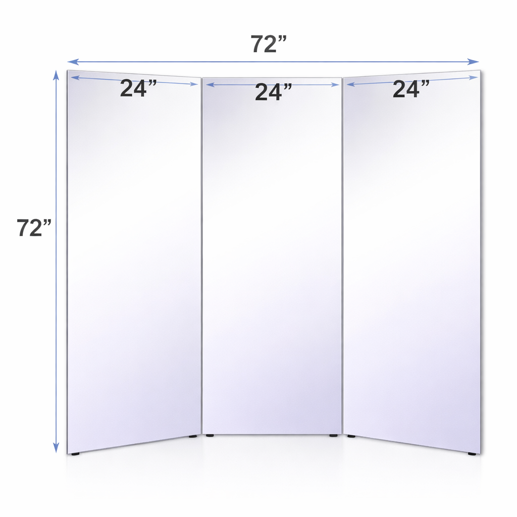 The Mirrorlite® Folding Glassless Mirror is designed for maximum portability, safety, and ease of use in professional and temporary environments. Its lightweight, shatterproof construction allows the mirror to be transported and deployed without the risks and handling challenges associated with traditional glass mirrors.