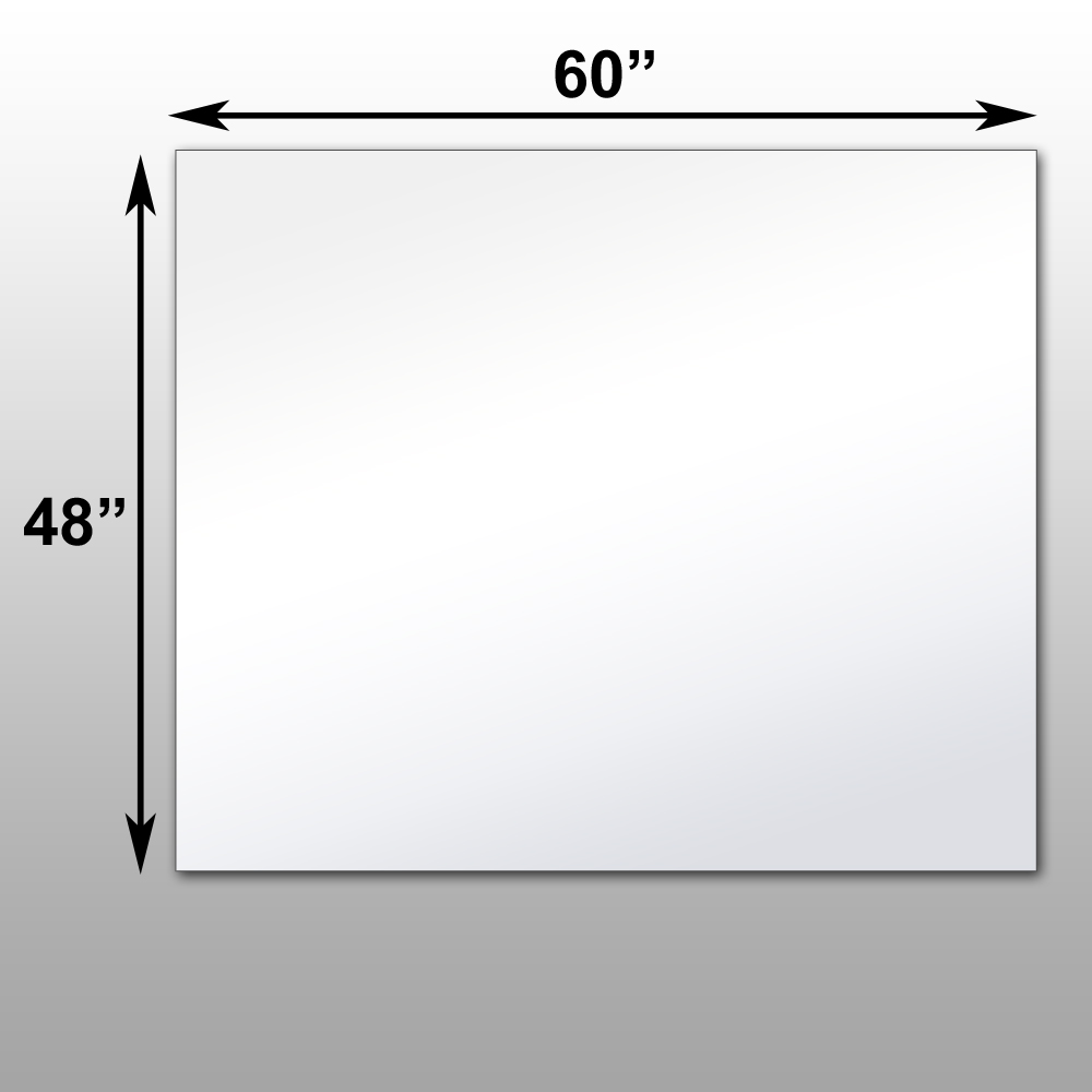 Projection front surface thin film mirrors are designed to be used with all projection technology: CRT, LCP, DLP – Dimensional Tolerances for all mirrors sizes up to 96″ long are +/- 1/8″ up to 192″ long +/- 1/4″; over 192″ long +/- 3/8″. Dimensions: 48″ x 60″ x 1 7/16″. Optical mirror stand not included.