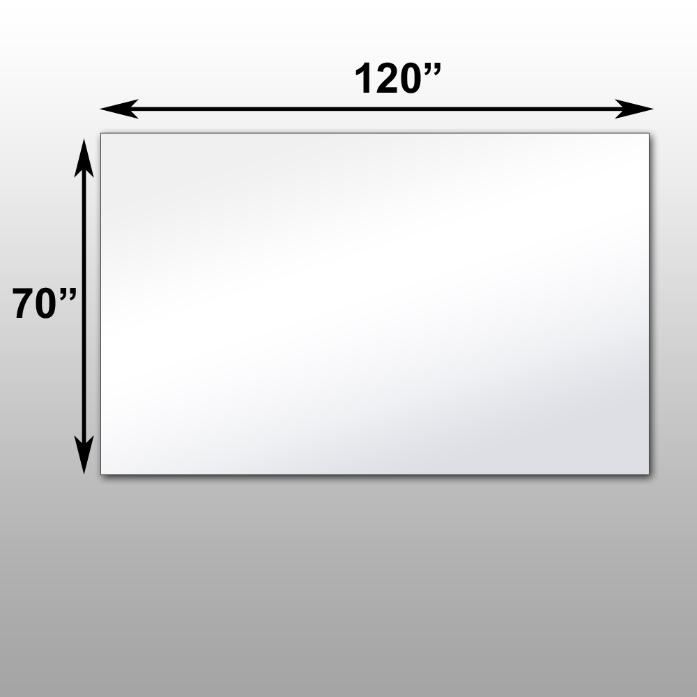 Projection front surface thin film mirrors are designed to be used with all projection technology: CRT, LCP, DLP – Dimensional Tolerances for all mirrors sizes up to 96″ long are +/- 1/8″ up to 192″ long +/- 1/4″; over 192″ long +/- 3/8″. Dimensions: 70″ x 120″ x 2.5″. Optical mirror stand not included.