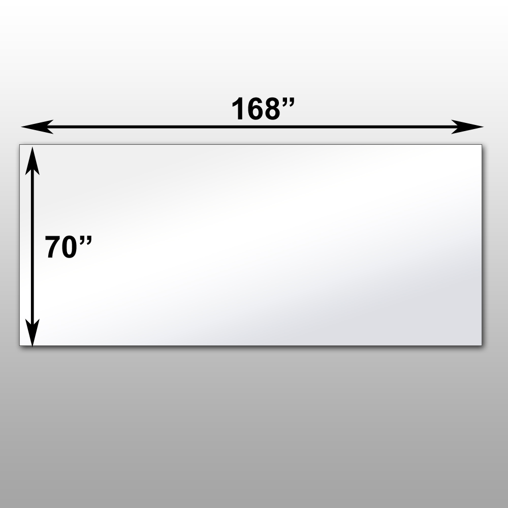Projection front surface thin film mirrors are designed to be used with all projection technology: CRT, LCP, DLP – Dimensional Tolerances for all mirrors sizes up to 96″ long are +/- 1/8″ up to 192″ long +/- 1/4″; over 192″ long +/- 3/8″. Dimensions: 70″ x 168″ x 2.5″. Optical mirror stand not included.