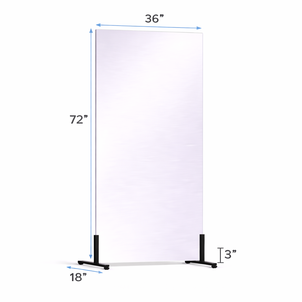 This free-standing glassless mirror features a rigid reflective surface supported by durable aluminum floor stands with protective plastic end caps. The lightweight construction allows the mirror to be easily repositioned or rolled into storage when not in use, making it ideal for studios and multi-use spaces.