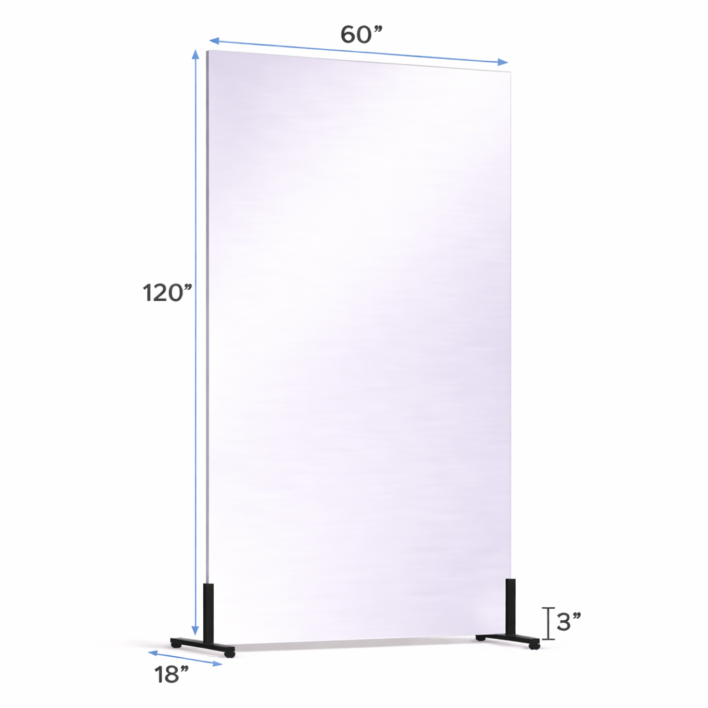 Our Mirrorlite® Vertical Free Standing Glassless Mirror is a lightweight, shatterproof free standing mirror that eliminates the need to mount to a wall. Aluminum stands with plastic end caps, commercial grade office chair casters and mounting hardware included. Rolling mirror can be easily rolled out the way into a storage area. Easy assembly. Dimensions: 60″ x 120″ x 1.25″.